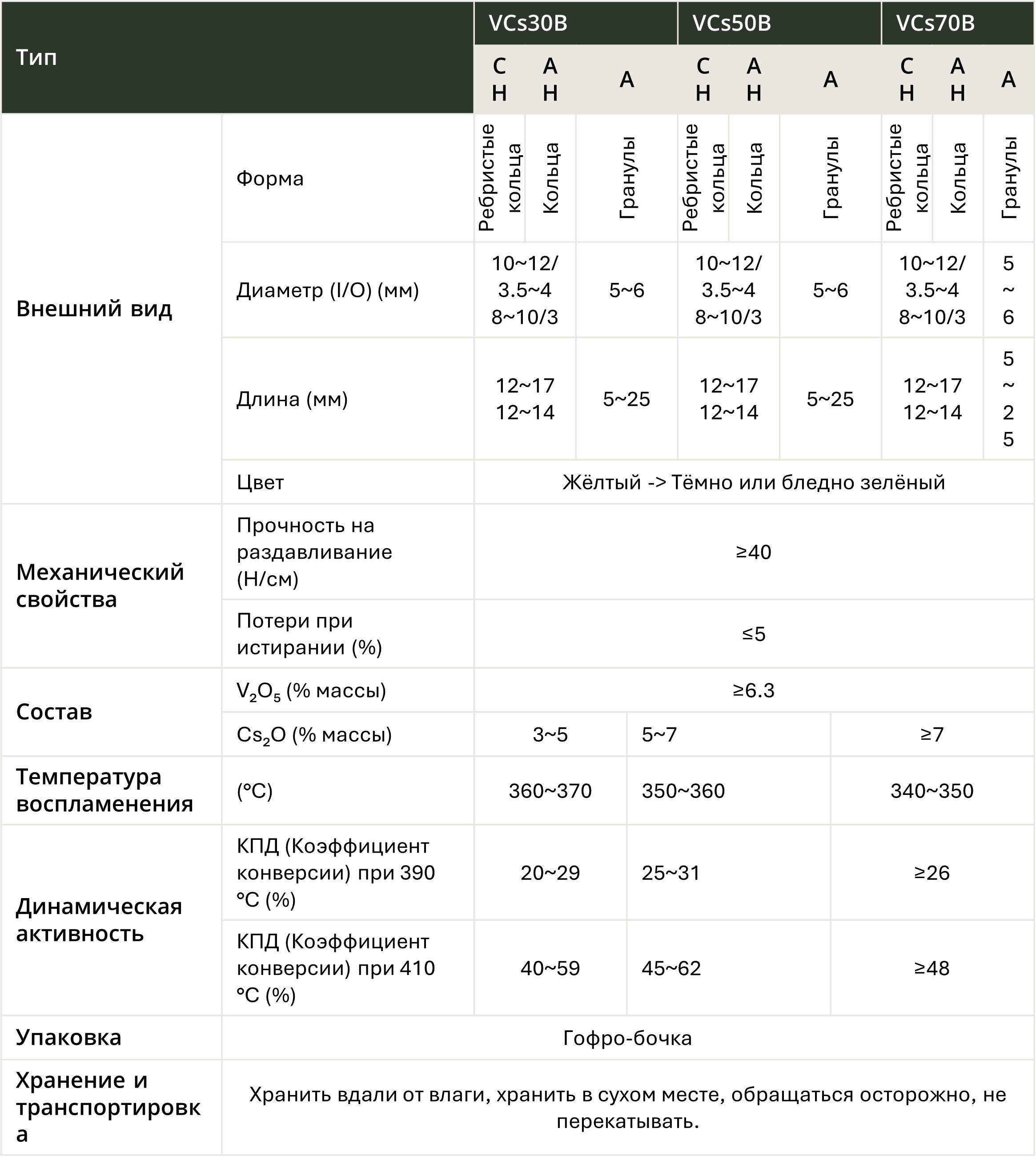 VCs - это новый вид катализатора с ванадием, в качестве активного компонента, и цезием, в качестве промотора.